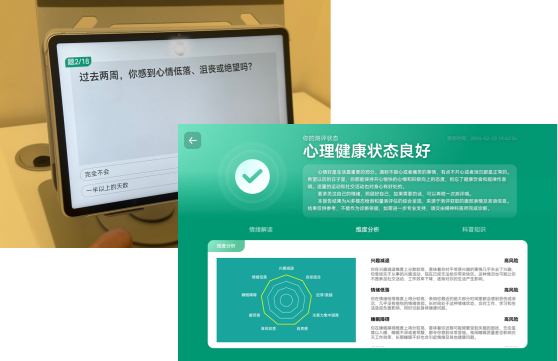 太和安华医疗应用此系统可实现对抑郁、焦虑等多种精神疾病相关的情绪状态快速智能测评。把传统的面对面心理评估时间从1-2个小时缩短至5-10分内,在5-8分钟内可输出检测结果,且防伪能力强。大大的节省了受评估人员的时间,不受地点限制,在家即可完成,保护了测试者的隐私,并且准确度高,作为重要的疾病诊断辅助手段。